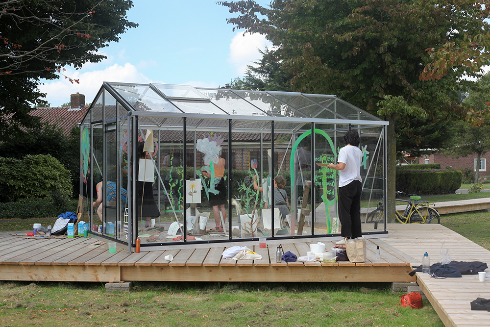 For their show at Growing Space, Manon Verkooyen and Jake Caleb asked people to join a field study documenting weeds and wildflowers in the area of the Wielewaal redevelopment. They invited others to take part in their method of observation and listening in the belief that more eyes and ears see and hear more. This resulted in the drawings and paintings displayed in the green house of the Growing Space.