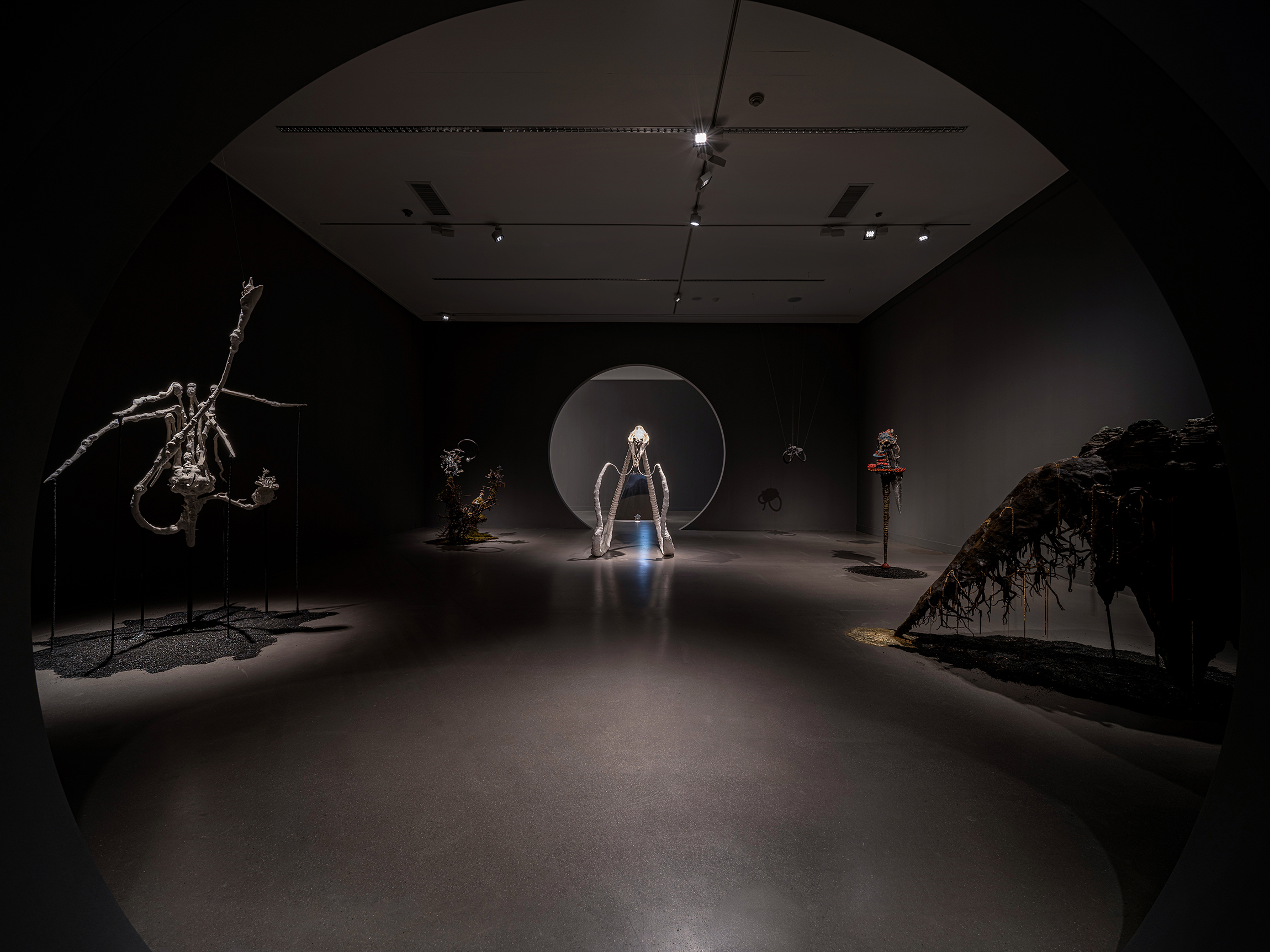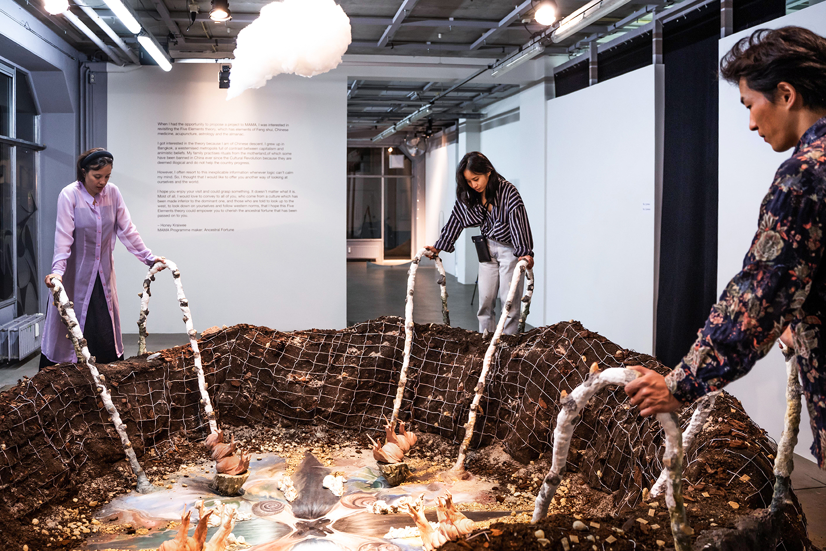 Ancestral Fortune is a cosmic journey where past fuses into future. This exhibition invites you to let go of your human perception and step into the universe of the nonhuman that lives side by side with us. In this space, we respect those who can see without eyes, hear without ears and speak without mouths. Slowly and communally we observe the fluid patterns of nature and learn to understand their rhythmic changes.