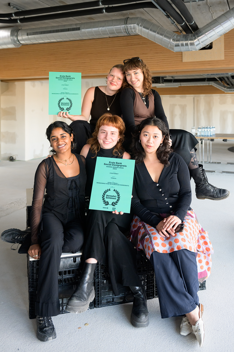 Nabila Ernada, Nomi Toirkens, Elna Aurand, Violeta Perez Hurtado, Caroline Holper and Phoebe Hotopf—brought their mobile kitchen project, Kiosk T//WASTE, to Vienna Design Week, where it won the tenth Stadtarbeit Social Design Award. The project aimed to both challenge our notions of food waste within industrial food systems by turning discarded ingredients into something not only edible but desirable. The group’s mobile kitchen roamed through Vienna’s third district, transforming rescued ingredi