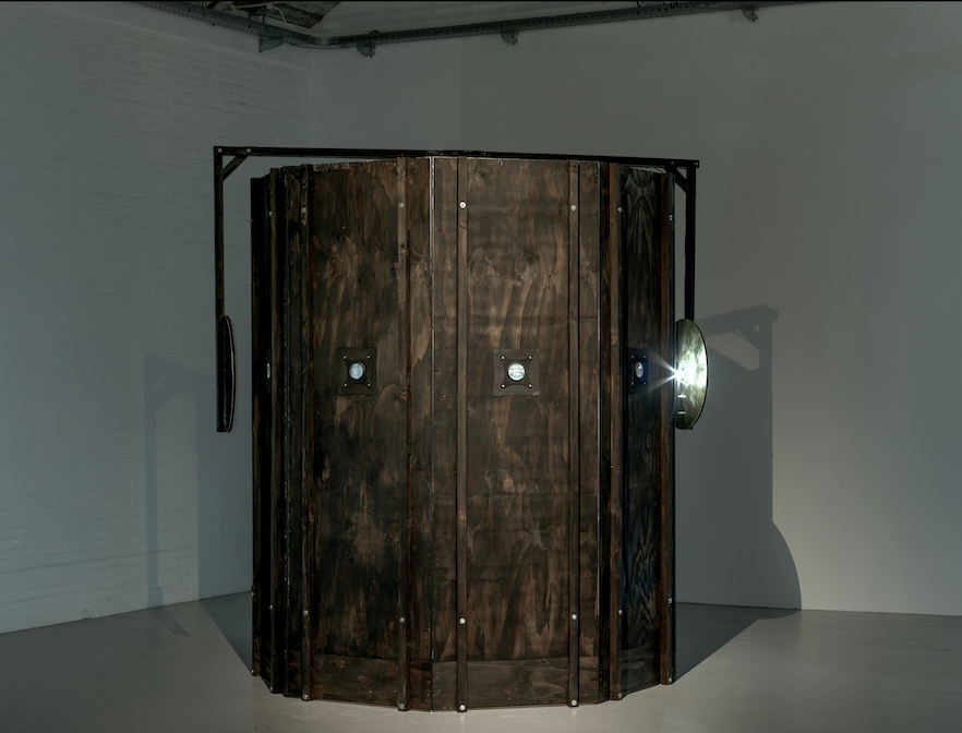 Eigengrau (2021) functions as a temporary escape in a contemporary setting, in which a light cylinder takes the audience through a narrative of various mental states.